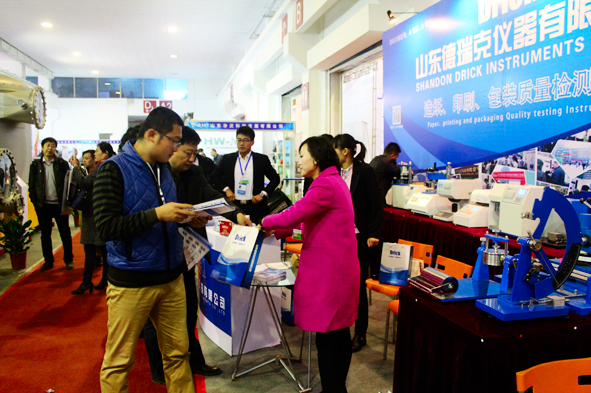 山東(國際)制漿造紙技術及裝備展覽會已成功舉辦了15屆,本次舉辦地點在山東機械設備展覽中心,展會展出面積約20000平米,專業觀眾達到2萬人次,圍繞造紙新技術和節能降耗組織了數場較高水平的技術專題講座。山東德瑞克儀器有限公司攜拉力機、抗壓機、耐破度儀、吸水性測定儀、平滑度儀等十余種新型檢測儀器出展,產品的美觀,穩定,智能化,適中的價格,深得與會客戶的一致認可與好評。