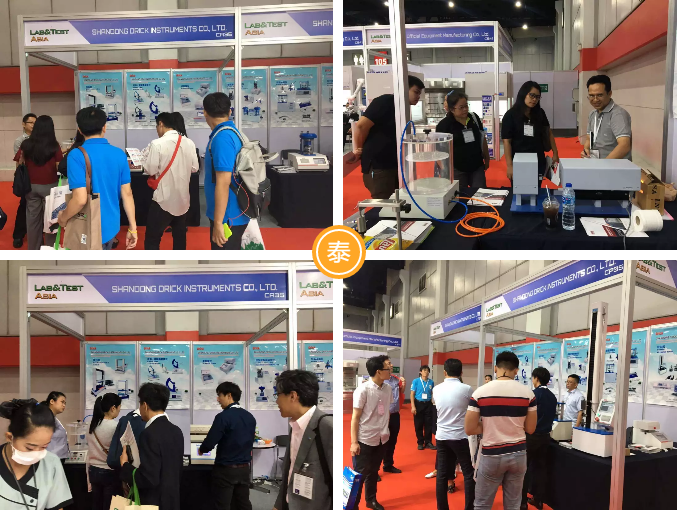上海展我們展出的產(chǎn)品有:初粘性測試儀、持粘性測試儀、臥式電子拉力試驗機、電子拉力試驗機、密封試驗儀、雙五點熱封儀、摩擦系數(shù)、 薄膜測厚儀、氣相色譜儀、恒溫恒濕箱、透光率霧度測試儀、薄膜熱收縮性能測試儀 、薄膜擺錘沖擊試驗儀、電子撕裂度測試儀、落鏢沖擊試驗儀;泰國曼谷展我們攜帶的產(chǎn)品有:拉力機,熱封儀,泄漏與密封強度測試儀,壓縮試驗儀 耐破度儀,柔軟度儀。以上產(chǎn)品的展出,收獲了許多客戶的青睞和關(guān)注,更有幾批客戶現(xiàn)場簽下訂單。