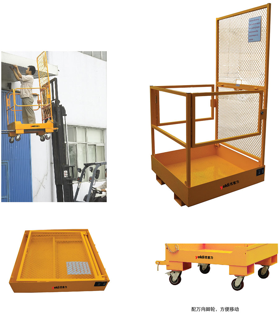 ● 載人平臺(tái)通過安全長銷和和鏈條固定在貨叉上,確保不會(huì)滑動(dòng)。