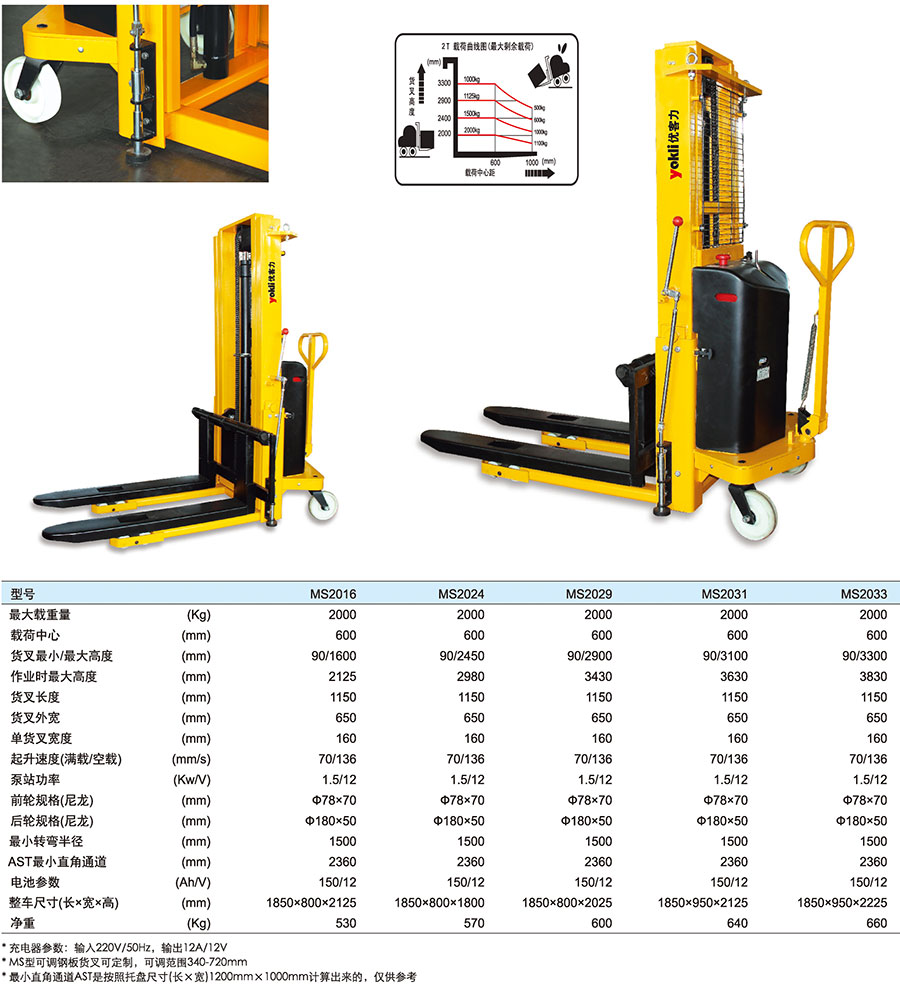 寬支腿型半電動堆高車