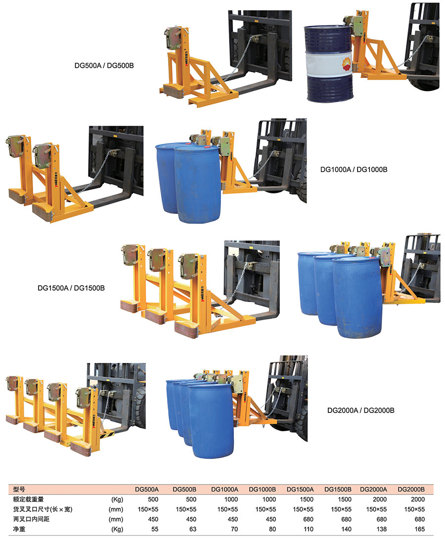 ● 與叉車配套使用,用于油桶的搬運、堆放。