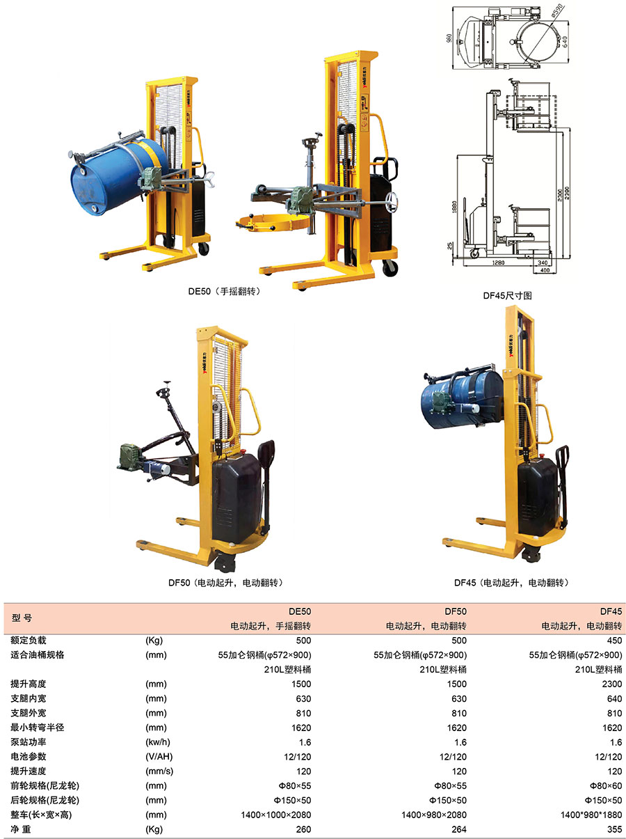 ● DF50電動起升、電動翻轉。