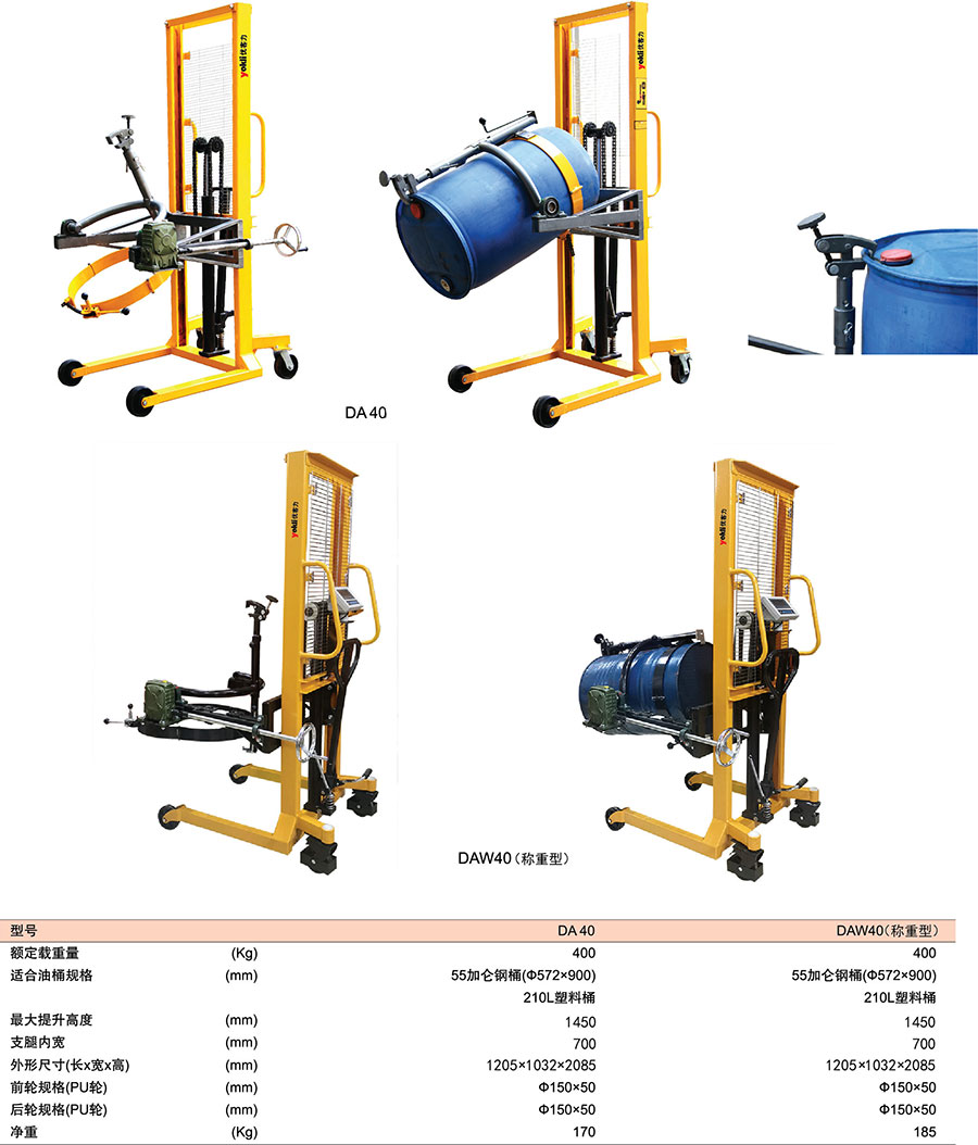 ● 叼扣式和抱箍式相結合,適合各種55加侖鋼制桶和200L閉口塑料桶。